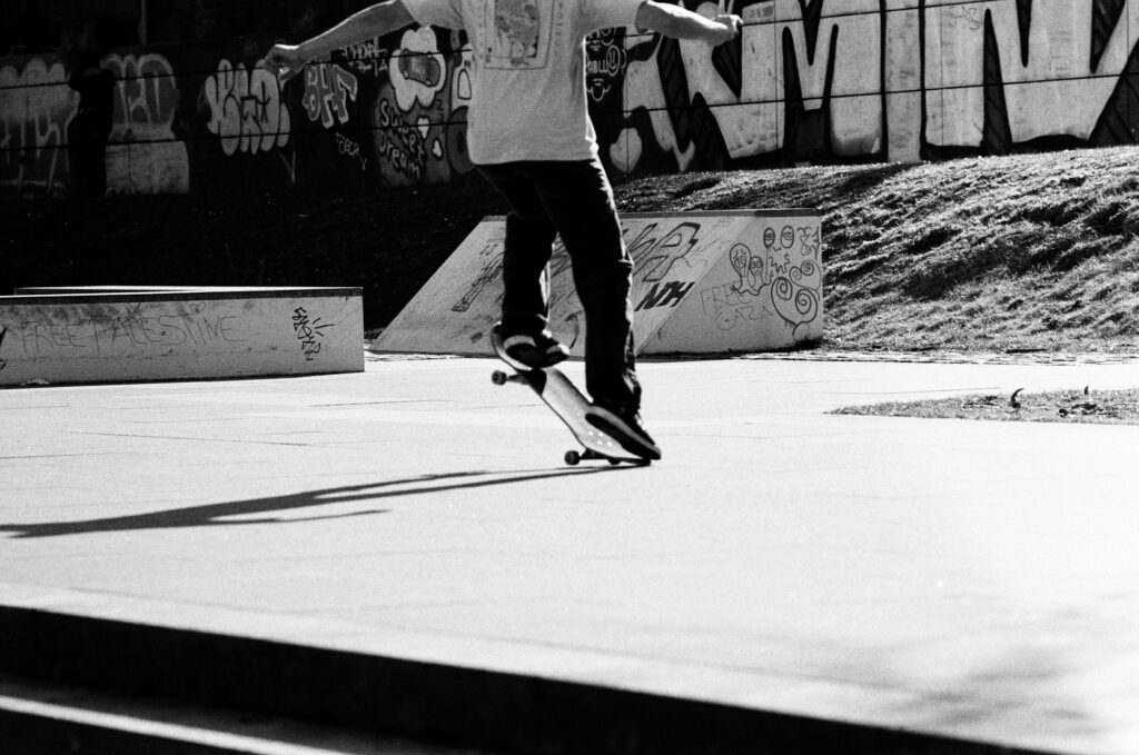 Was ich an Skateboard-Fotografie liebe, ist die Geschichte, die jedes Bild erzählt. Der Skatepark, die Straße, die Stimmung des Moments – all das fließt in jedes Foto ein. Es geht nicht nur um die Bewegung, sondern auch um das Gefühl, das Skateboarden in einer Stadt oder im Park erzeugt.